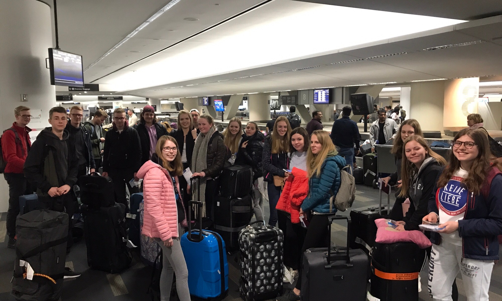 USA-Freizeit 2018Sicher gelandet! von Mindful Jugendhilfe25/03/201827/03/2018 Das Abenteuer kann beginnen! Wir sind da und alle ins Land gelassen worden. Auch die Koffer sind alle da. Jetzt geht es ins Hostel! Wer sollte diesen Beitrag unbedingt auch noch lesen? Klicken, um auf WhatsApp zu teilen (Wird in neuem Fenster geöffnet) WhatsApp Klick, um auf Facebook zu teilen (Wird in neuem Fenster geöffnet) Facebook Klicken, um einem Freund einen Link per E-Mail zu senden (Wird in neuem Fenster geöffnet) E-Mail