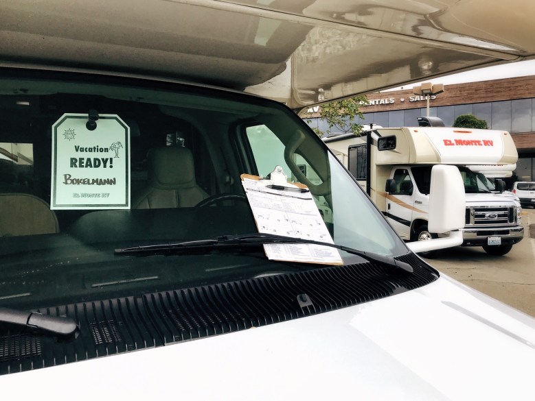 Reibungsloser kann ein Camping-Urlaub nicht beginnen. 07.00 Uhr Frühstück, 07.30 Uhr Abholung durch unseren Wohnmobil-Vermieter, 09.00 Uhr Abfahrt Richtung Supermarkt. Natürlich kam uns dabei zugute, dass wir hier regelmäßig sind, das ganze Paperwork bereits im Vorfeld erledigt hatten und auch keine lange Einführung mehr benötigen. So waren wir die ersten 13 von 120 Personen, die an diesem Tag mit ihren zwei großen RVs an der Vermietstation aufbrechen konnten und bei weitem nicht so aufgeregt waren, wie die anderen deutschen Mieter, die zum ersten Mal so eine Reise angetreten haben.