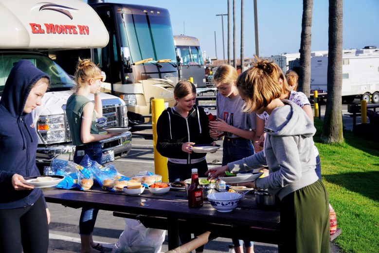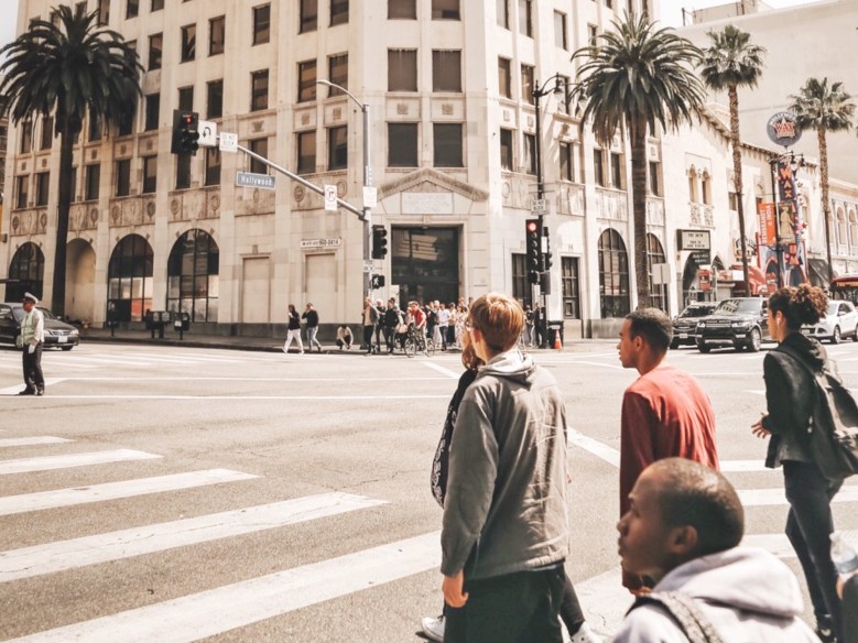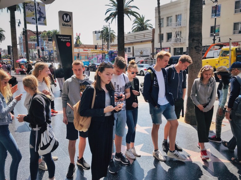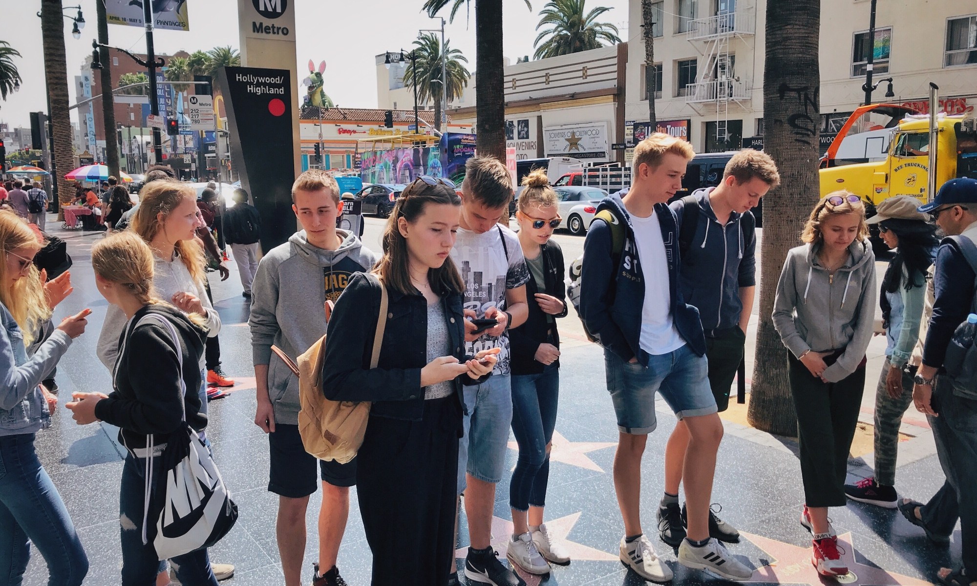 „Um 08.15 Uhr sind wir heute Vormittag mit Bus und Bahn zum Walk of Fame gefahren“ (Phil). „Das waren so viele Busse und es war so weit und Los Angeles ist schon ziemlich krass“ (Justus). „Da heute Earth-Day war, war es damn cheap (Anmerkung der Redaktion: kostenlos) mit den öffentlichen Verkehrsmitteln in die City zu cruisen. Nice!“ (Moritz). „In der Stadt fühlt man sich wie ein Miniaturmensch und man wird von CD-Ninjas gejagt, die einem CDs andrehen wollen“ (Carin). „Du kannst am Ende noch sagen, dass wir uns zum Abendessen Hamburger gegönnt haben“ (Carin).