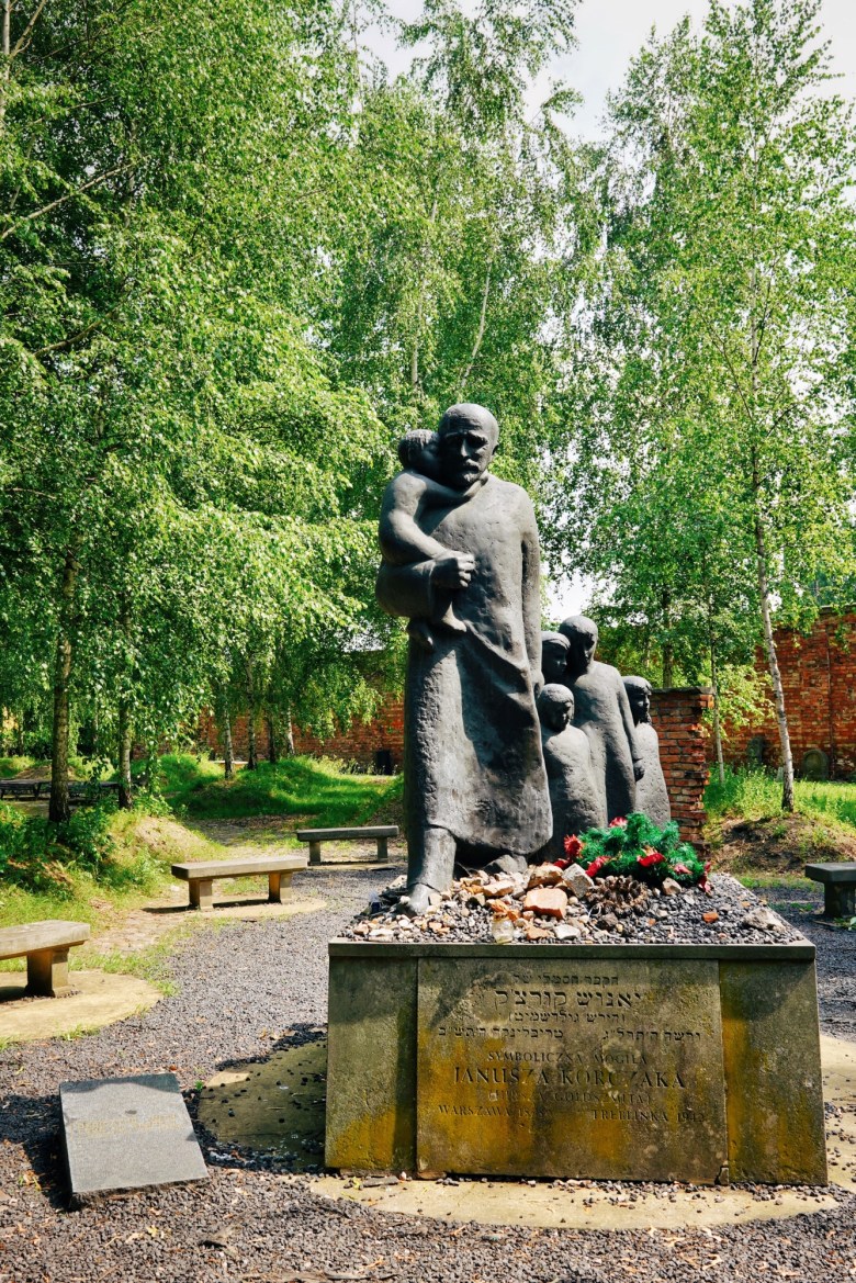 Auf dem jüdischen Friedhof erinnern das Korczak-Denkmal und ein weiteres für die vielen umgekommenen Kinder an die Zeit des Holocausts und die Gräueltaten der Deutschen.