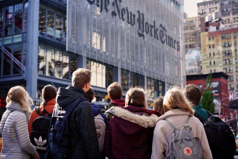 Nach dem Frühstück ging es zum zweiten wichtigen Ort der Demokratie hier in New York (nach den Vereinten Nationen): zur New York Times, der größten und sicherlich auch bekanntesten Zeitung Amerikas, vielleicht sogar der Welt. Immer wieder hat die NYT wichtige Themen behandelt und gesellschaftlich aufgedeckt. Damit zeigt sie, wie wichtig die Presse gerade in „schwierigen“ Zeiten für die Demokratie ist.