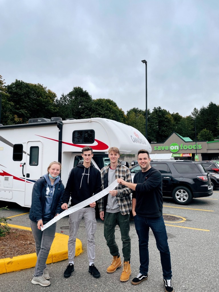 Heute Vormittag lief alles wie am Schnürchen: Aufstehen, Koffer packen, Frühstücken, Auschecken und dann mit Skytrain und Taxi zum Wohnmobilverleih, wo wir schon erwartet wurden. Da noch nicht beide RVs (Motorhomes) fertig waren, haben wir uns aufgeteilt und die Vorhut ist schon mal in Abbotsford einkaufen gefahren, was für eine Gruppe natürlich vier volle Einkaufswagen und 20 Minuten an der Kasse bedeutet.