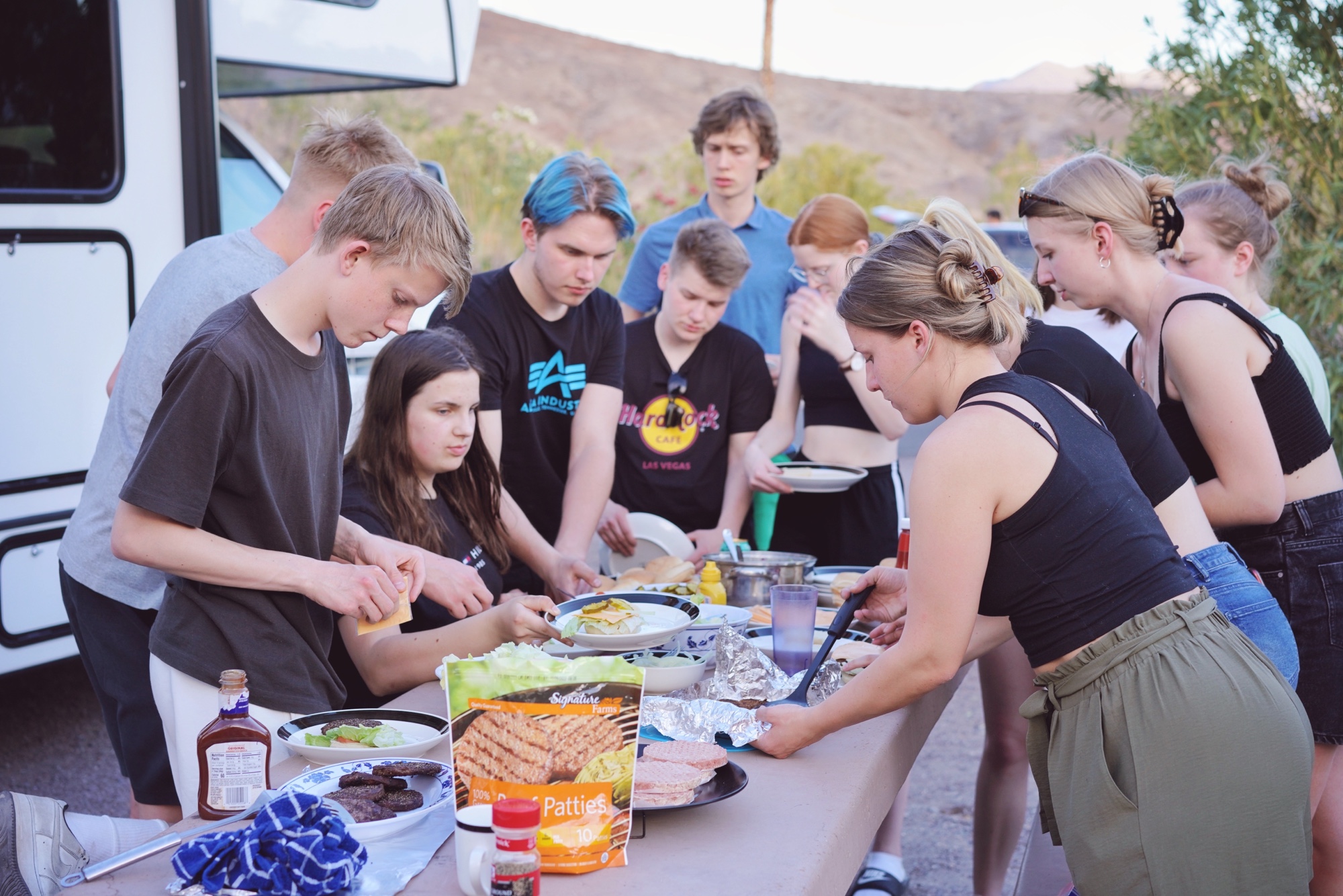 Eben haben wir am Lake Mead unser Nachtlager aufgeschlagen, den Grill „angeschmissen“ und flame-grilled Burger mit Coleslaw verputzt – es geht nicht besser!