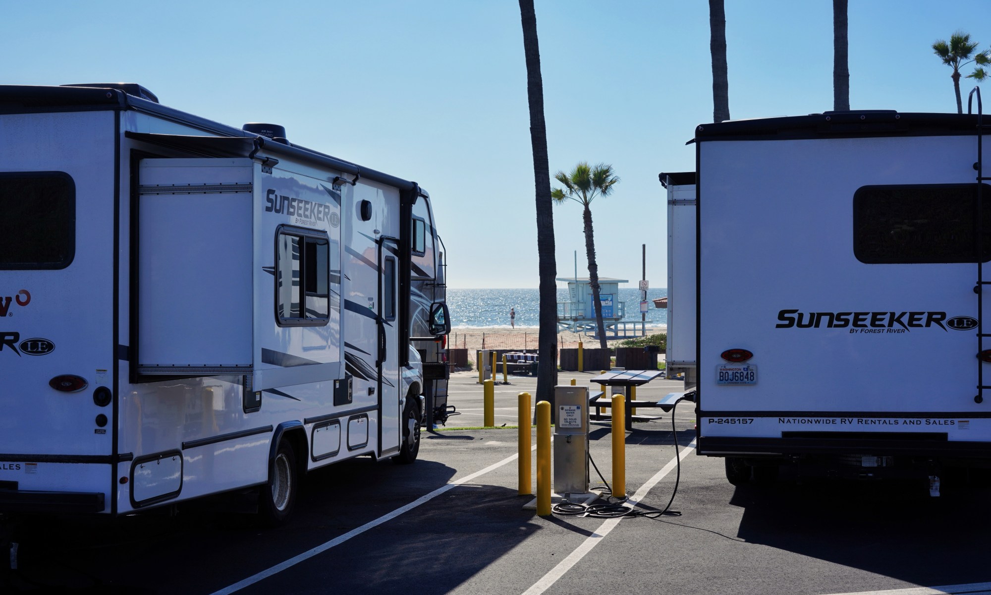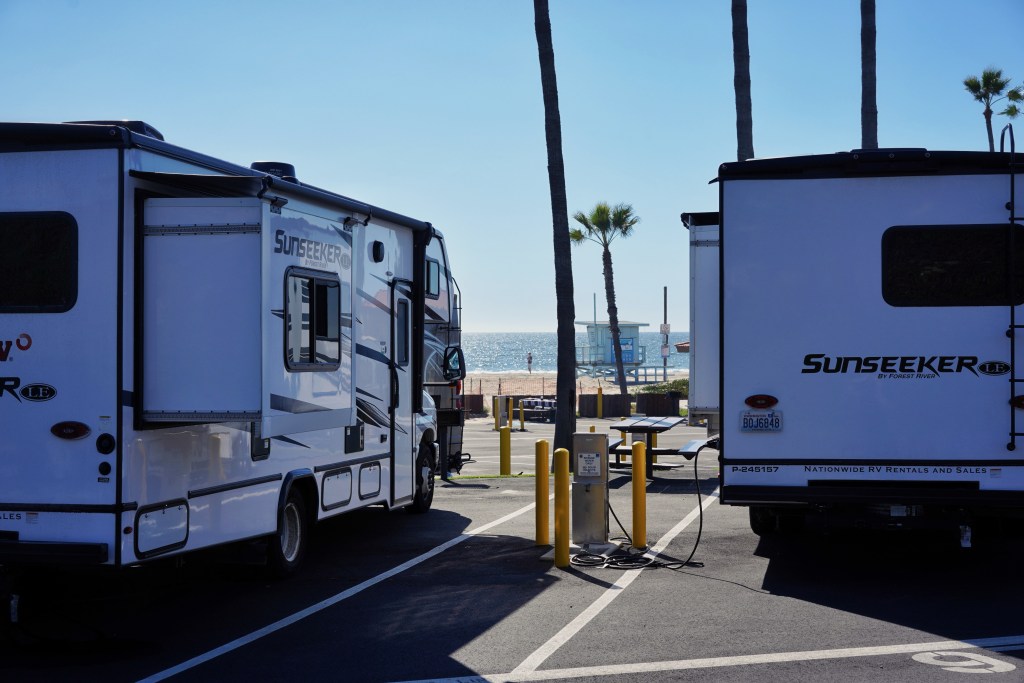 Nach diesem Stop führte uns der Weg, wie zu erwarten, in den typischen Verkehrsstau von LA, der uns direkt zu unserem Campingplatz am Strand brachte. Von unseren Stellplätzen aus haben wir einen direkten Blick auf den Ozean, und einige der mutigeren unter uns ließen es sich nicht nehmen, ein erfrischendes Bad in den kalten Wellen zu nehmen.
